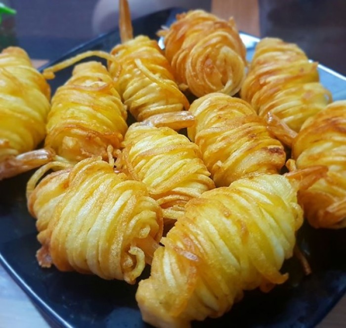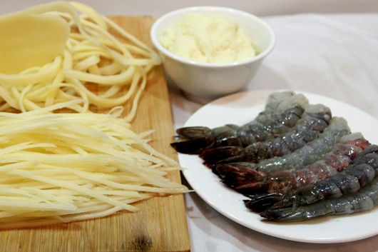 Tôm cuộn khoai chiên là món ăn ngon hoàn hảo cả về chất lượng và hình thức. Sự hòa hợp giữa vị ngọt của tôm cùng với vị thơm bùi của khoai tây, bên ngoài được bao bọc bổi những sợi khoai tây giòn rụm, vàng ươm làm cho món ăn vô cùng hấp dẫn