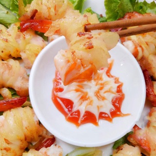 Tôm cuộn khoai tây chiên giòn nên dùng nóng sẽ giòn và ngon hơn rất nhiều, chấm với tương ớt ngọt.
